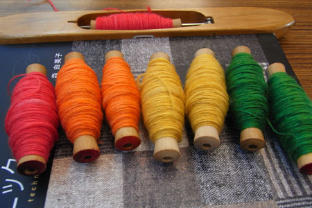 ↓緯糸に使う糸(手前)とシャトル