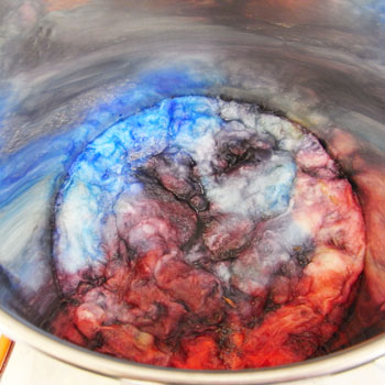 うっかり煮えた染料をこぼしちゃって熱い!!